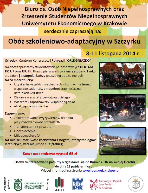 Ostatni miesiąc semestru letniego roku akademickiego 2013/2014 niepełnosprawni studenci Akademii Górniczo – Hutniczo w Krakowie spędzili na przyswajaniu kroków tanecznych tańców latynoamerykańskich , standardowych oraz elementów bluesa, polki i discofoxa. Wszystko działo się pod czujnym okiem dyplomowanej nauczycielki Królewskiego Towarzystwa Nauczycieli Tańca Wielkiej Brytanii Pani Anny Smoroń. Uczestnicy wykazywali mnóstwo zaangażowania i motywacji podczas zajęć, natomiast prowadząca dokładała wszelkich starań, aby wykonywane kroki były coraz bardziej dokładne i profesjonalne.